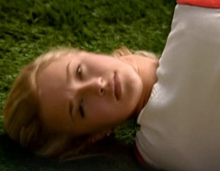 Later as the football players practice, Claire walks with Zach across the field. Claire complains about all the attention her friend, who's name is revealed to be Jackie, is receiving. Zach attempts once more to inform claire about something, telling her that the tape of her attempting to kill herself is gone. Just then a football player rams Claire to the ground. They both fall to the floor, he rolls away safely, but Claire is shown to have broken and twisted her neck 360 degrees around however, luckily, Zach was the only one who noticed. She quickly regenerates and relocates her neck. The football player then helps her up asks if she's alright she says she's ok and proceeds to tell everyone else the same. She then tells Zach that they have to find the tape.